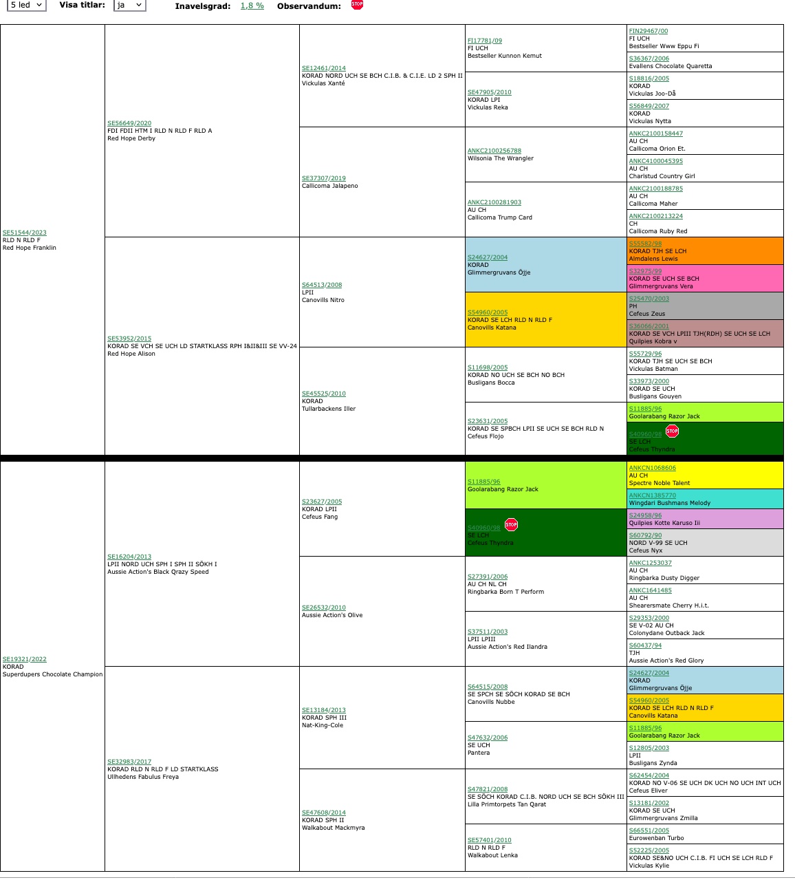 Kombinasjonen gir en innavels % på 1.8
